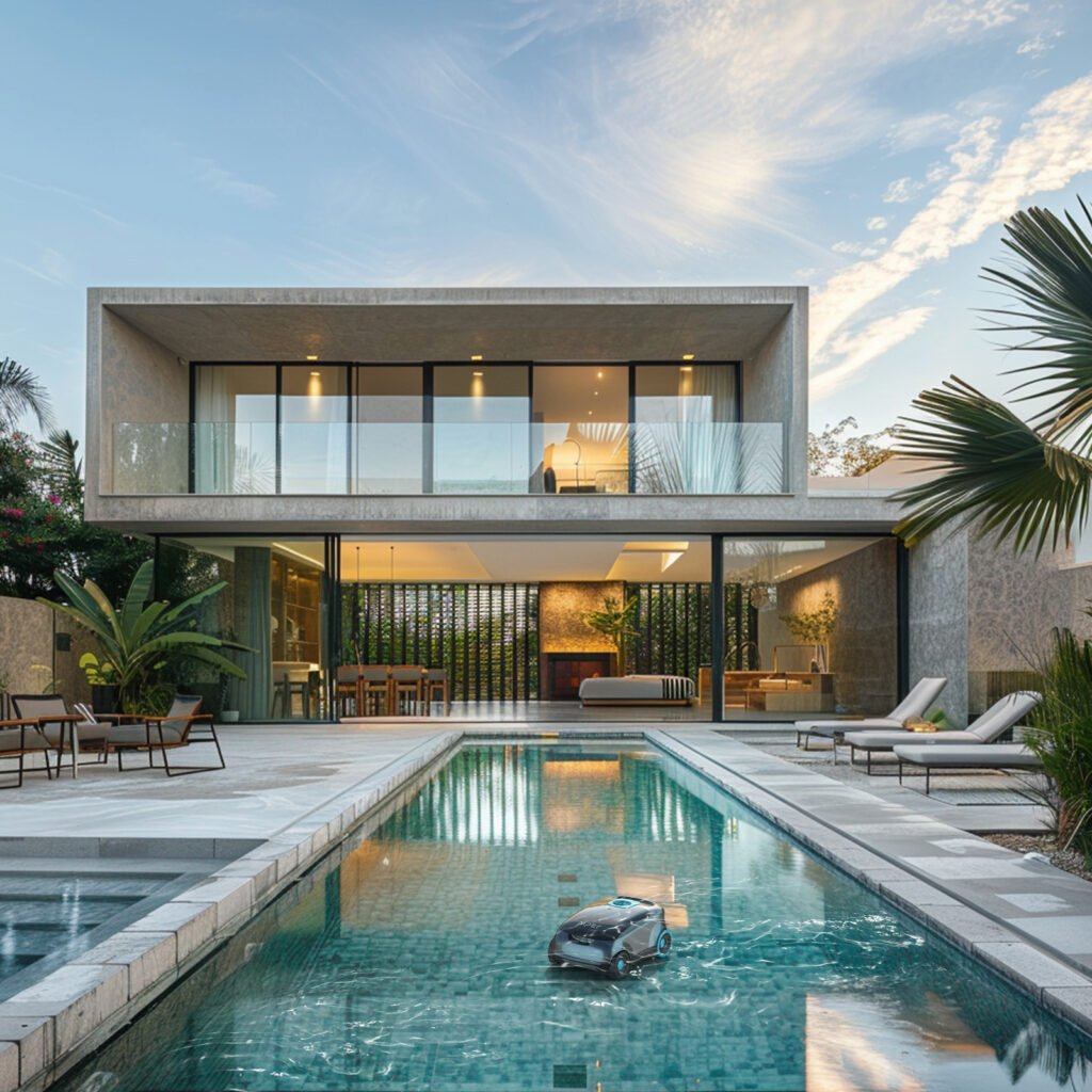 Automatiniai robotai vidaus ir lauko baseinų valymui ir priežiūrai.
